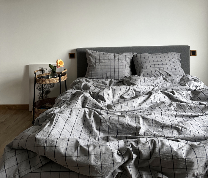 Этот комплект постельного белья привносит в спальню ощущение современного стиля и утонченной элегантности. Сдержанный серый оттенок с крупным клетчатым узором создает атмосферу спокойствия и уюта, делая ваш отдых еще более комфортным и приятным.